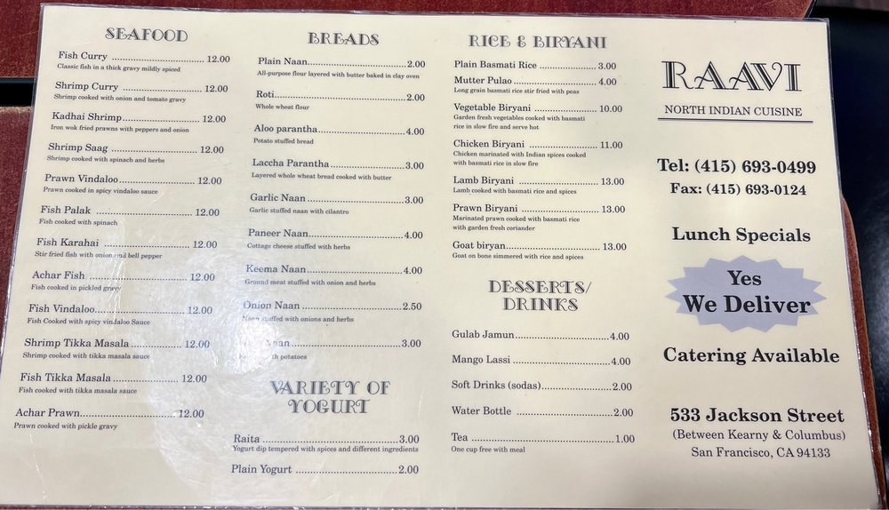 Welcome to Raavi, an Indian culinary gem nestled in the heart of San Francisco, where flavors meet comfort and tradition. Raavi caters to a diverse clientele, offering an extensive menu featuring both vegan and vegetarian options, ensuring everyone can find something to savor.